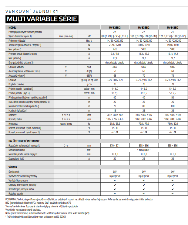 - Vyhřívání kompresoru a šasí venkovní jednotky