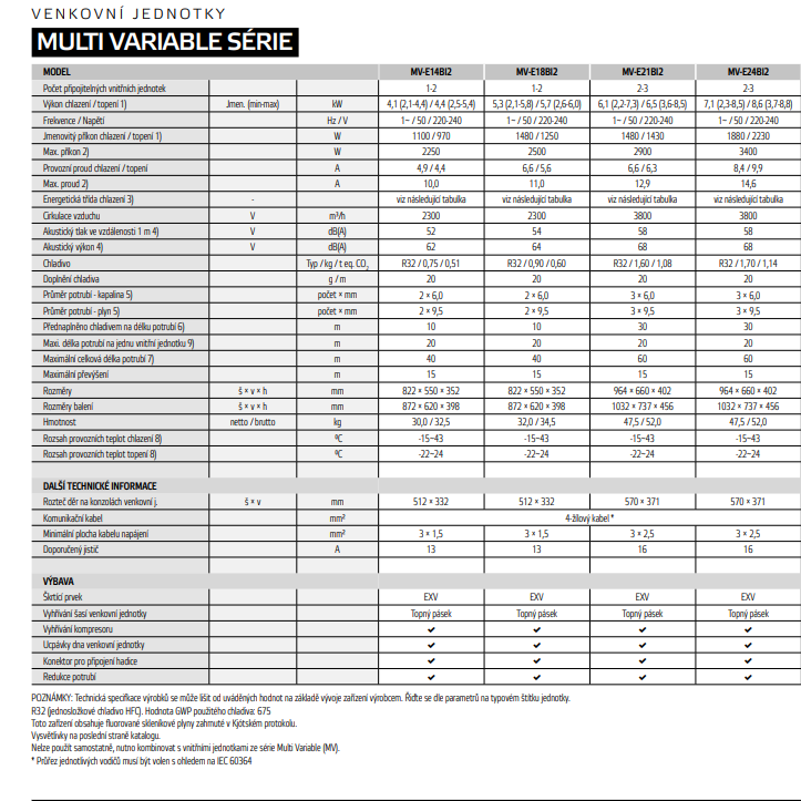 - Vyhřívání kompresoru a šasí venkovní jednotky