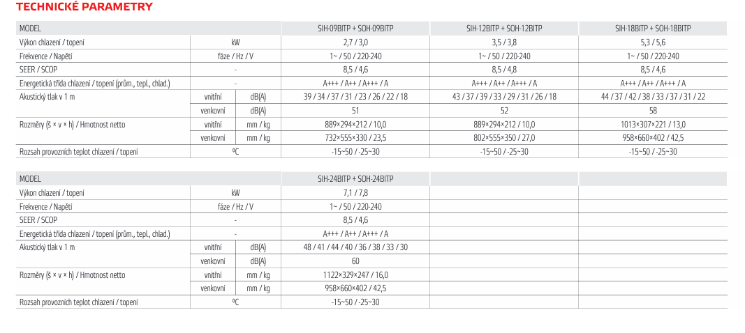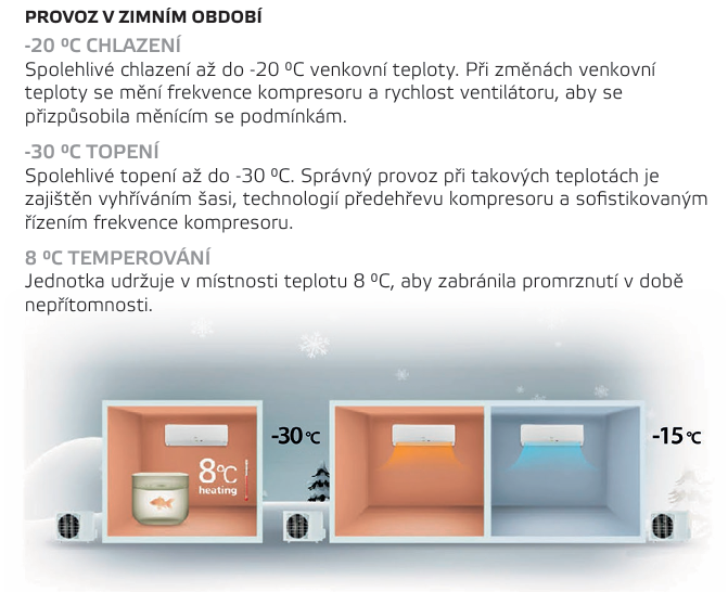 - Noční režim - tichý chod venkovní jednotky