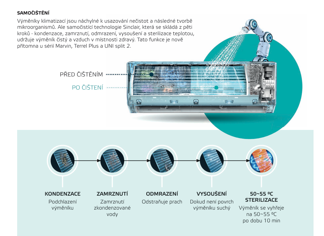 - Vyhřívání dna venkovní jednotky