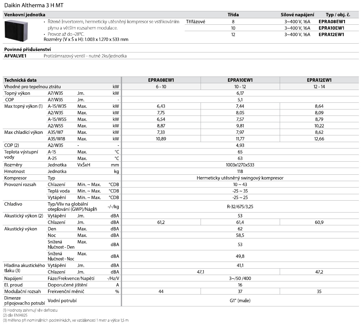 Venkovní jednotka a její parametry