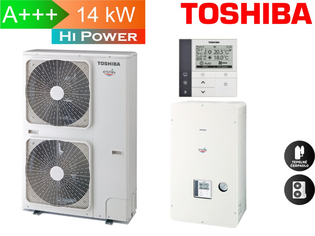 Set Toshiba ESTIA HI POWER 14,0kW/6,0 kW, 380V 3f, vč. hydromodulu.